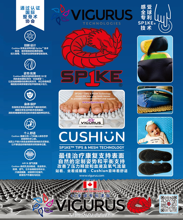 Vigurus 的 Sp1ke® Tips 和 Mesh 仿生結(jié)構(gòu)科學(xué)提供卓越的緩沖舒適性和壓力分布。對于個人健康和健身以及移動產(chǎn)品,Sp1ke® 在人們坐著、站著、跪著或躺著的任何地方都能無與倫比地增強血液/氧氣流動、姿勢、本體感覺和體感刺激。