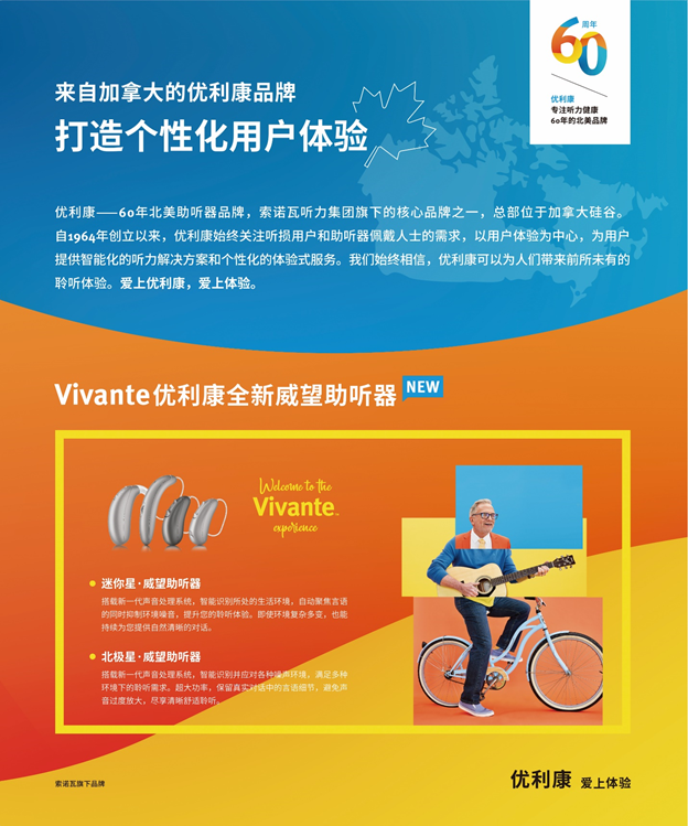 優(yōu)利康(Unitron)專業(yè)助聽器品牌,隸屬全球領(lǐng)先的聽力集團sonova公司,致力于為消費者提供專業(yè)的驗配處方助聽器產(chǎn)品。優(yōu)利康于1964年成立,總部位于加拿大滑鐵盧地區(qū)。60多年堅持致力于開發(fā)提供非凡個性化水平的聲學(xué)技術(shù)、產(chǎn)品和服務(wù)。我們所做的一切都是基于我們的信念,即人們應(yīng)該對整個聽力保健體驗感到非常滿意。這就是為什么我們專注于為人們提供改善生活的聽力體驗,在聽力護理過程的每個階段為客戶提供支持。致力于追求卓越產(chǎn)品性能、設(shè)計和客戶滿意度的承諾感到自豪,旗下的威望系列助聽器采用最先進的聲學(xué)算法以及集團自研的專業(yè)助聽器芯片,已在中國市場同步供應(yīng)。
