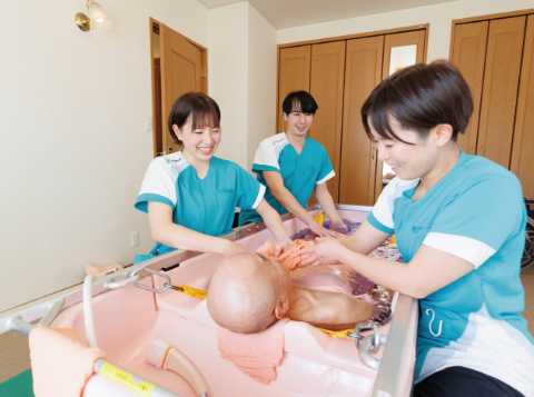 到宅沐浴工作人員3~4人(其中1人為護士)攜帶簡易浴缸上門提供特殊沐浴的服務(wù)。乘車拜訪客人的家,在家中安全空間內(nèi)組裝便攜式浴缸,給客人洗澡。