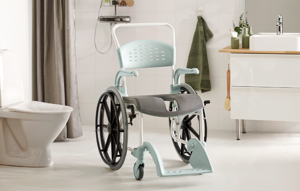 Etac Clean 24"是一款自推型的移動式浴廁多功能椅,操作方便,適合那些能獨立操作椅子進衛(wèi)生間并渴望獨自完成沐浴坐便需求的人使用。它兼具洗澡椅、坐便椅、馬桶增高椅和室內(nèi)輪椅四合一的功能特點,整體車架一根鋼管設(shè)計,無任何焊接,保證了在浴室環(huán)境中不被腐蝕和氧化。Etac Clean的大車身設(shè)計,使用者可以利用它來方便的完成空間轉(zhuǎn)移的需求。