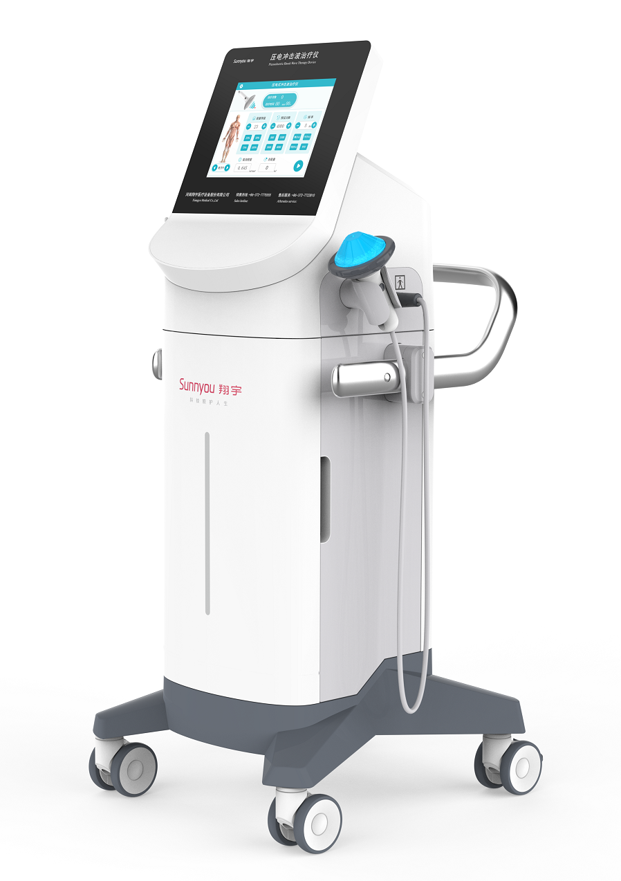 壓電式?jīng)_擊波原理是將數(shù)百計的壓電晶體,排列在一個凹形面上。外界電場通過壓電晶體時,使晶體體積發(fā)生改變,產(chǎn)生壓力波。當晶體復原時,產(chǎn)生張力波。全部壓電晶體共同振動,一起發(fā)出沖擊波,經(jīng)橢球體的收集,使全部能量聚焦于治療部位。所有的沖擊波能量在球心附近會聚,在極高的能量及其誘發(fā)的空化的破壞作用到病灶區(qū)域等。