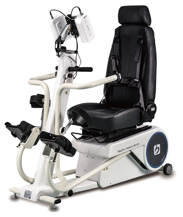 這是一款針對(duì)步行功能障礙進(jìn)行高效康復(fù)訓(xùn)練的下肢康復(fù)機(jī)器人。產(chǎn)品由計(jì)算機(jī)控制系統(tǒng)、步態(tài)矯正裝置系統(tǒng)、動(dòng)靜態(tài)減重系統(tǒng)、醫(yī)用跑臺(tái)系統(tǒng)以及情景互動(dòng)訓(xùn)練系統(tǒng)五大模塊組成。它可以使患者在直立體位下通過不斷重復(fù)且軌跡固定的步態(tài)訓(xùn)練,強(qiáng)化正常步態(tài)記憶,促進(jìn)患者本體感覺的輸入與正確運(yùn)動(dòng)模式的形成,從而加強(qiáng)大腦結(jié)構(gòu)和功能重塑,建立正確的行走模式并有效的鍛煉其相關(guān)肌肉與關(guān)節(jié),加速下肢功能的恢復(fù)。