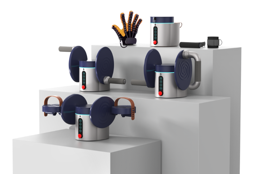 康復(fù)機(jī)械手、居家康復(fù)訓(xùn)練系統(tǒng),通過機(jī)械輔助增加老年人關(guān)節(jié)活動度和緩解肌張力,適用于居家康復(fù)訓(xùn)練。