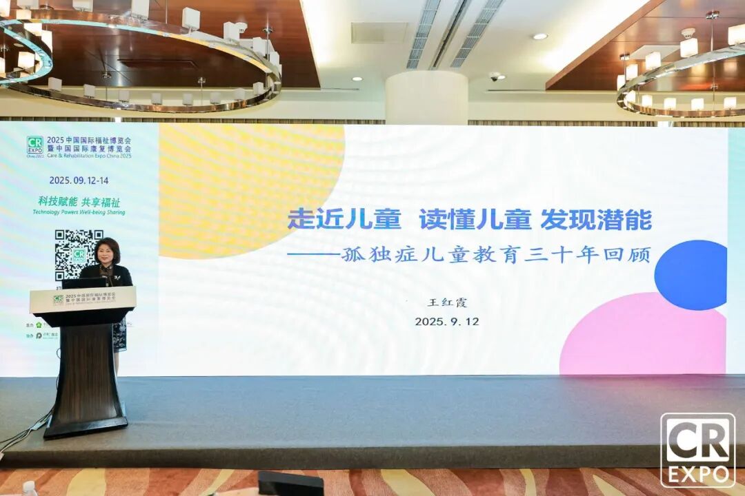 北京市健翔學(xué)校校長、海淀區(qū)特教中心主任王紅霞以《走進兒童,讀懂兒童,發(fā)現(xiàn)潛能—孤獨癥兒童教育三十年回顧》為題,回顧了學(xué)校孤獨癥教育30多年來經(jīng)歷的初步探索、個別化教育、多元化發(fā)展至整體系統(tǒng)變革的四個階段。面對學(xué)生人數(shù)激增35倍,障礙程度加重帶來的挑戰(zhàn),30年的發(fā)展轉(zhuǎn)型特點主要在:一是以“首善先行”為總綱,“15年縱向貫通、全社會橫向融通、學(xué)習(xí)泛在可及、數(shù)智全面賦能”,強化校內(nèi)外課程一體化整合,深入挖掘區(qū)域資源潛能,構(gòu)建開放共享的教育生態(tài)和“五育并舉”課程體系;二是加強個性化支持,運用數(shù)智能平臺和教師、家長的觀察記錄實現(xiàn)個性化學(xué)習(xí)與過程性評估,努力做到支持隨時隨刻,出彩機會眾多;三是增進多專業(yè)協(xié)同,構(gòu)建教師梯隊培養(yǎng)體系,深化家校社共育機制,打破傳統(tǒng)課堂邊界,實現(xiàn)“處處是課堂,處處受教育”的全區(qū)域育人新模式,系統(tǒng)規(guī)劃與創(chuàng)新實踐助力孤獨癥兒童發(fā)掘潛能、融入社會。
