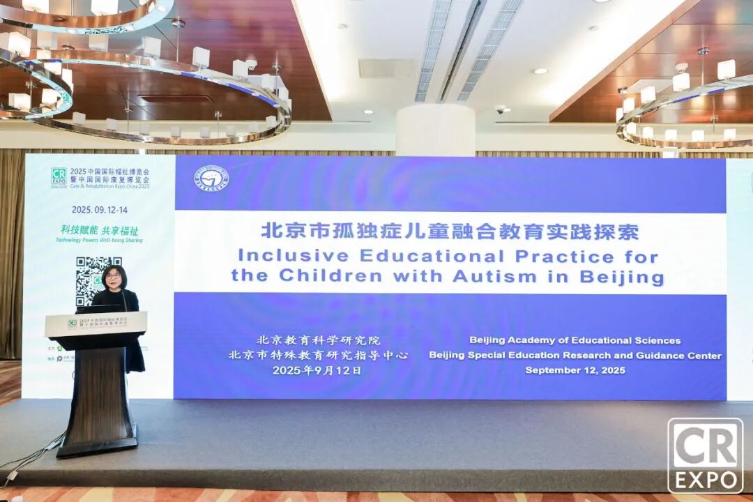 北京教育科學(xué)研究院北京市特殊教育研究指導(dǎo)中心主任孫穎研究員分享了《北京市孤獨癥兒童融合教育實踐探索》,介紹了北京市的制度、課程與支持一體化的實踐模式。通過市、區(qū)、校三級強化制度設(shè)計保障入學(xué)機會,依托三級評估與響應(yīng)機制實現(xiàn)個性化課程適配,并構(gòu)建縱向?qū)I(yè)教師支持網(wǎng)絡(luò)與橫向?qū)W校-基地協(xié)作機制,結(jié)合智能平臺與家校社共育氛圍,系統(tǒng)推動孤獨癥兒童在普校實現(xiàn)“可進入、能參與、強支持”與全學(xué)段、全過程、全鏈條的高質(zhì)量融合教育。