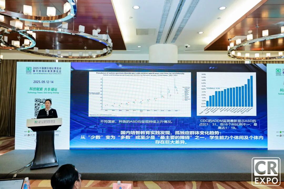 南京特殊教育師范學(xué)院特聘教授徐云作《中國孤獨癥兒童教育的現(xiàn)狀與展望》報告。他指出,自1982年我國學(xué)者首次報道以來,孤獨癥日益受到國家重視近年來,國家連續(xù)出臺各種專項政策,建立康復(fù)救助制度、實施特殊教育提升計劃、推出關(guān)愛行動方案等跨部門全生命周期的支持計劃;推動融合教育成為主流,“應(yīng)隨就隨”,學(xué)前教育倡導(dǎo)免費,義務(wù)教育提高生均經(jīng)費,強化育人為本,義務(wù)教育入學(xué)率超過97%;職業(yè)教育以提升融入社會為導(dǎo)向,不但切實解決就業(yè)難,還與新技術(shù)、新平臺有機融合,努力培養(yǎng)成為“時代新人”,不少地方因地制宜,就業(yè)率實現(xiàn)或接近100%;國家孤獨癥兒童特殊教育資源中心設(shè)立、孤獨癥兒童教育專業(yè)獲批、家長賦能培訓(xùn)、全社會支持與社會認同快速提升,教育模式正從“救助型”向“發(fā)展型”轉(zhuǎn)型。通過早篩干預(yù)、融合教育、社會融合銜接以及AI、VR等數(shù)智技術(shù)應(yīng)用,著力破解“早篩難、入學(xué)難、就業(yè)難”三大痛點。新時代新征程上,在師資培養(yǎng)、資源均衡與社會包容等方面還需要通過合作共享予以突破。