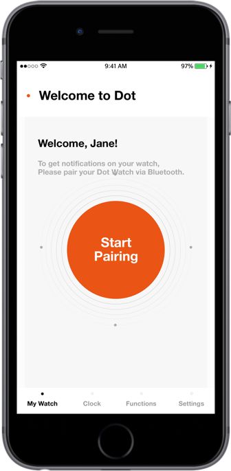 Dot Watch不僅有手表功能,還可以用藍(lán)牙連接智能手機(jī),通過(guò)點(diǎn)顯單元閱讀文字,SNS短信,通知等信息。