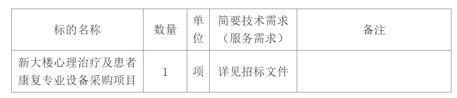 新大樓心理治療及患者康復(fù)專業(yè)設(shè)備采購(gòu)項(xiàng)目招標(biāo)公告(重新采購(gòu)第2次)