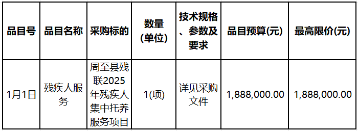 合同包1(周至縣殘聯(lián)2025年殘疾人集中托養(yǎng)服務(wù)項目一標(biāo)段):