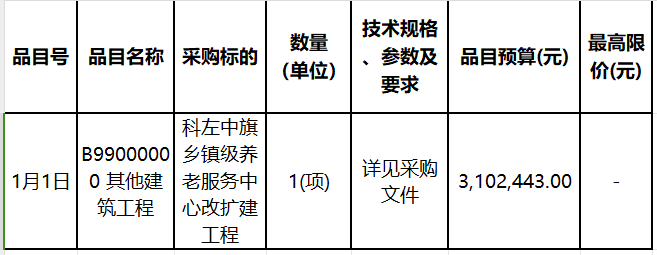 合同包1(科左中旗鄉(xiāng)鎮(zhèn)級養(yǎng)老服務(wù)中心改擴(kuò)建工程):