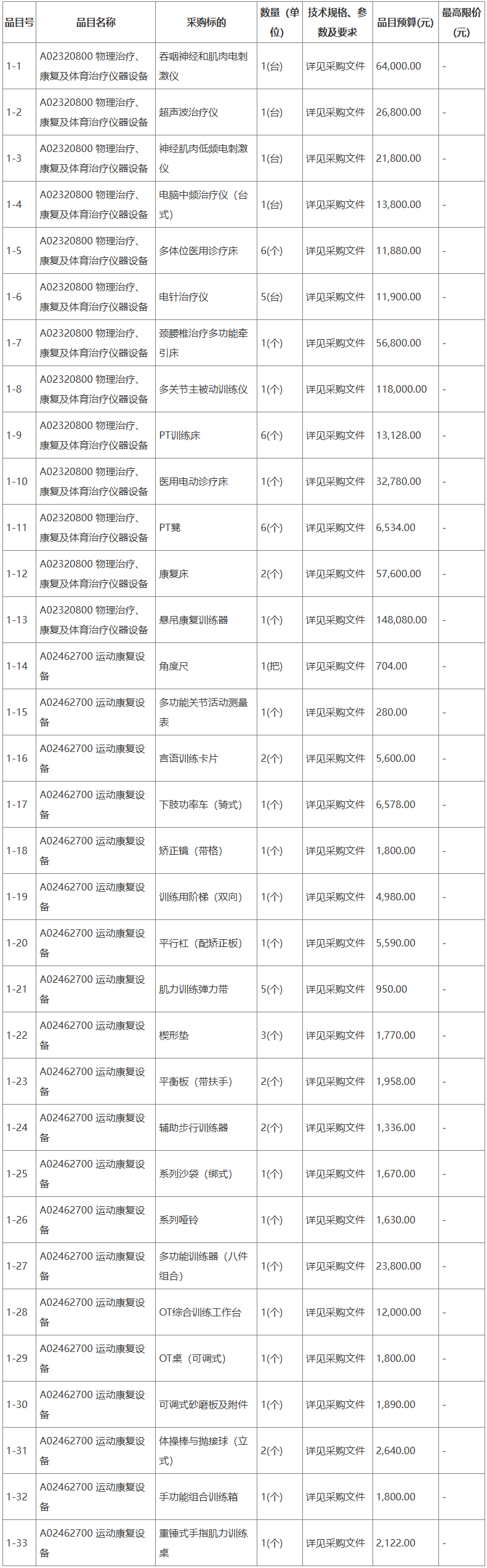 包名稱:上海市楊浦區(qū)大橋社區(qū)衛(wèi)生服務(wù)中心物理治療、康復(fù)及體育治療儀器設(shè)備采購項目(康復(fù)設(shè)備1)