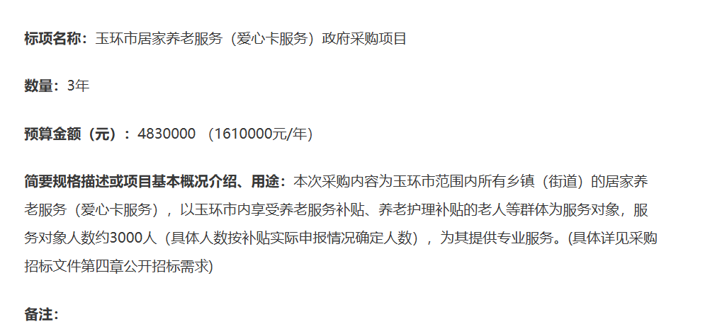 臺州邦元工程咨詢有限公司關(guān)于玉環(huán)市居家養(yǎng)老服務(wù)(愛心卡服務(wù))政府采購項目的公開招標(biāo)公告