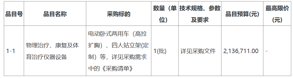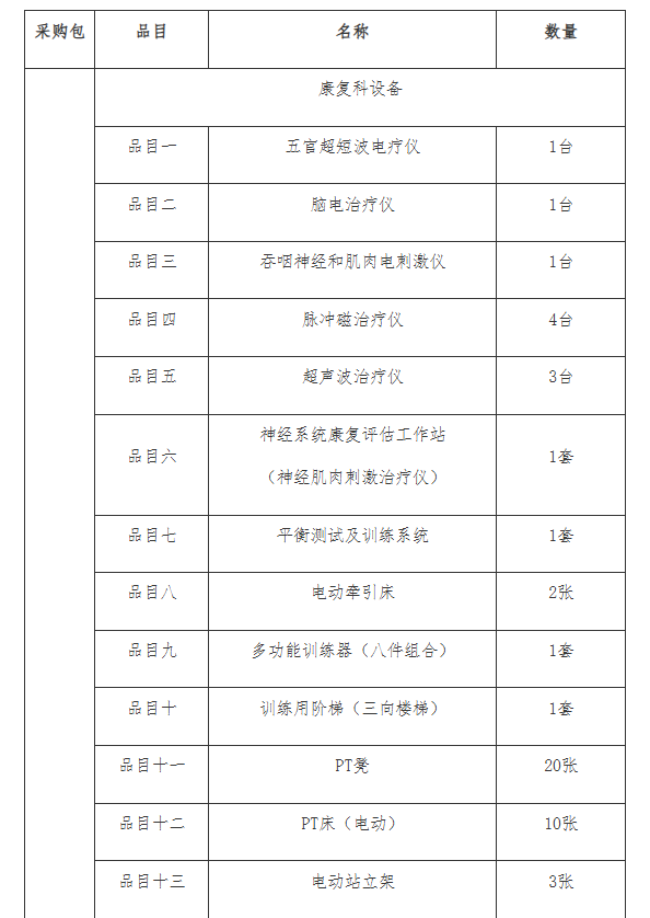 采購需求:煙臺市煙臺山醫(yī)院康復治療設備購置