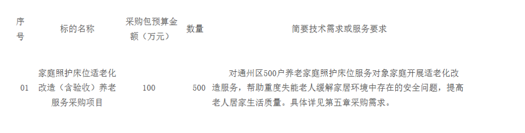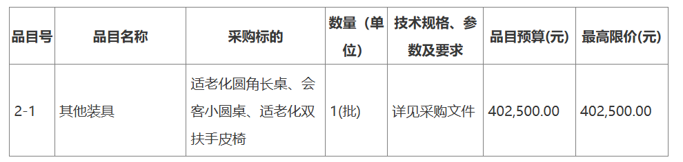 采購需求:專業(yè)養(yǎng)老服務機構建設項目設備采購