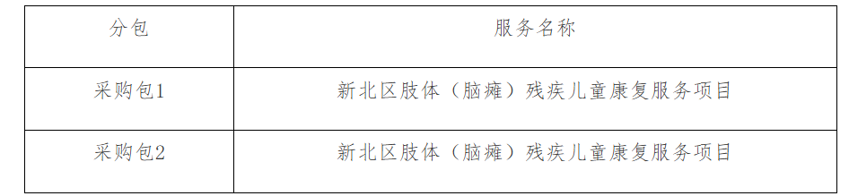 采購需求:為貫徹落實市殘聯等五部門關于印發(fā)《常州市殘疾兒童基本康復服務實施規(guī)范(2024年版)》的通知精神,對具有本市戶籍,有康復需求和康復意愿,經國內三級醫(yī)院、縣(市、區(qū))及以上殘聯指定的殘疾評定機構或殘疾評定專家組診斷評估有康復訓練適應指征的0-17周歲肢體(腦癱)殘疾兒童,進行殘疾兒童基本康復服務;具體詳見采購文件。