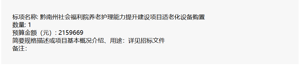 采購單位:黔南布依族苗族自治州社會福利院
