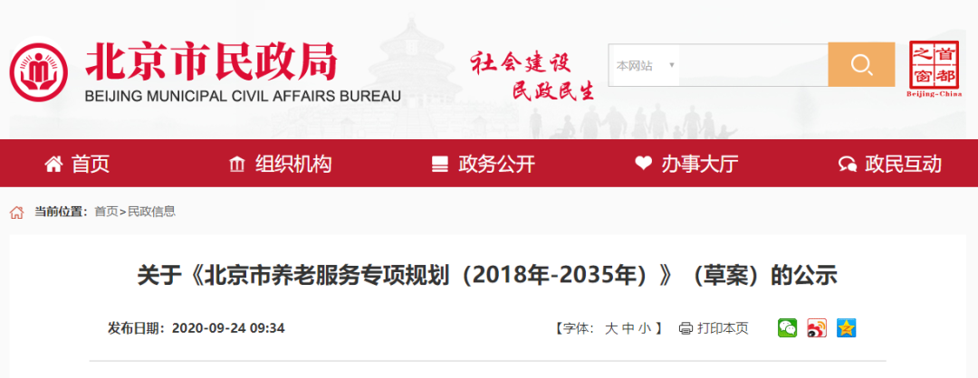 為落實北京城市總體規(guī)劃,自2018年6月以來,北京市民政局聯(lián)合北京市規(guī)劃和自然資源委員會共同編制《北京市養(yǎng)老服務(wù)專項規(guī)劃(2018年—2035年)》(以下簡稱“專項規(guī)劃”),目前已形成相對完善的文稿,現(xiàn)將專項規(guī)劃有關(guān)內(nèi)容進行公示,公示期3天。如有意見或建議,請于2020年10月23日前傳真或電子郵件方式反饋至市民政局,逾期不予受理。