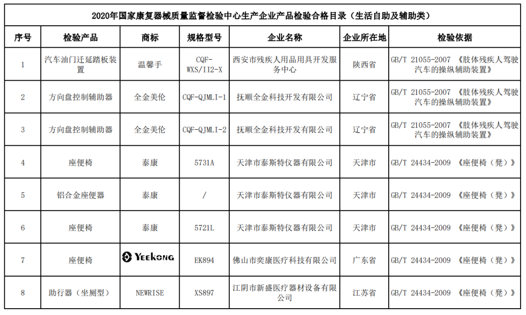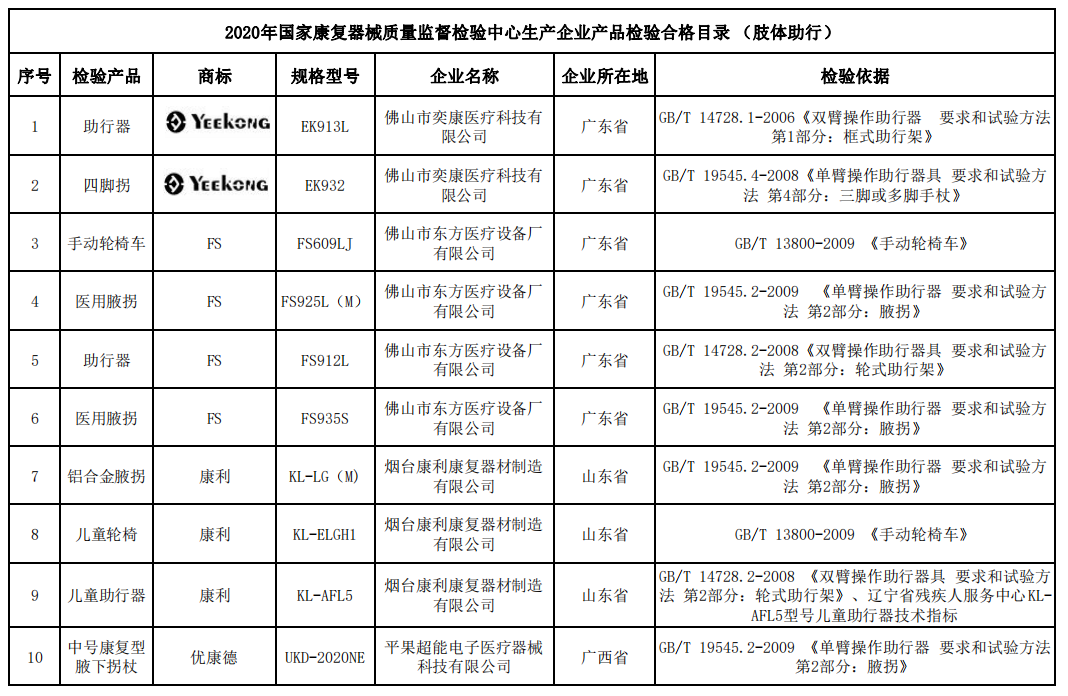 日前,中國殘疾人輔助器具中心公布了《國家康復(fù)器械質(zhì)量監(jiān)督檢驗中心 2020年生產(chǎn)企業(yè)產(chǎn)品檢驗合格目錄》,目錄包含假肢、肢體助行、聽力、視力、康復(fù)訓(xùn)練器械、生活自助及輔助類共6類產(chǎn)品。