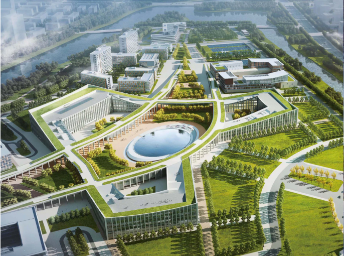 據(jù)悉,康復(fù)大學(xué)項目位于青島高新區(qū),項目用地面積90.56公頃,總建筑面積534510平方米,在建筑設(shè)計上,校園生活組團和教學(xué)組團建筑群將形成北高南低的城市天際線。