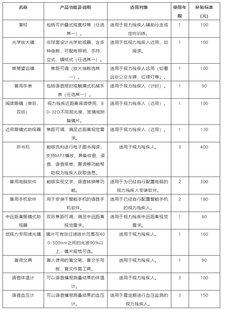 北京市殘疾人聯(lián)合會(huì)近期發(fā)布《2021年北京市殘疾人輔助器具購買補(bǔ)貼目錄》,自4月1日起實(shí)施,其中: