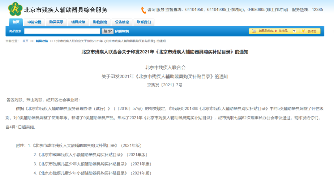 1.《北京市成年殘疾人大額輔助器具購買補(bǔ)貼目錄》(2021年版)