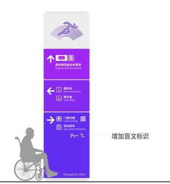 近期,杭州亞運(yùn)會(huì)、亞殘運(yùn)會(huì)發(fā)布了引導(dǎo)標(biāo)識(shí)系統(tǒng)基礎(chǔ)元素設(shè)計(jì),增加了可觸摸的盲文標(biāo)識(shí),便于視覺(jué)障礙者使用。