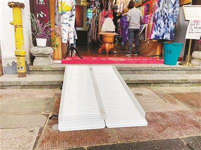 ▲清河坊某商鋪門口,鋪上了無(wú)障礙臨時(shí)坡道