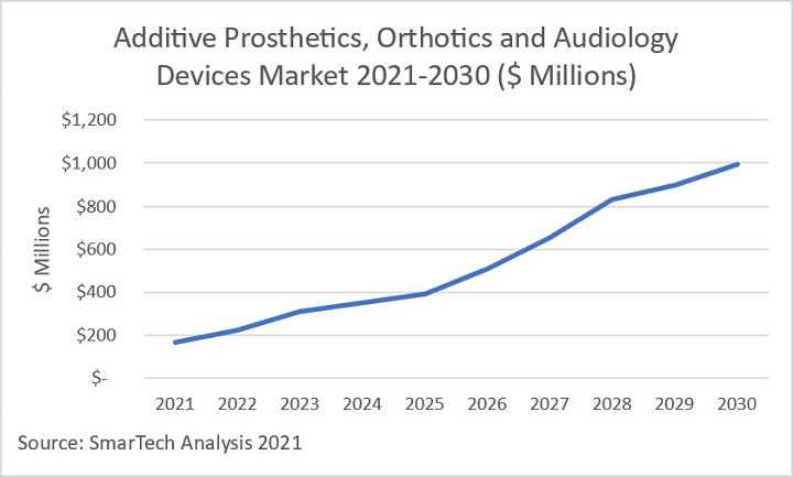 2021年7月9日,南極熊獲悉,近日,3D打印市場研究公司SmarTech Analysis發(fā)布了一份關于醫(yī)療器械3D打印現(xiàn)狀和預測的報告——《2021年醫(yī)療器械:3D打印假肢、矯形器和助聽器的市場機會 》