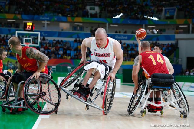 輪椅籃球的比賽輪椅也比田徑輪椅高,并且有更大的推圈(直徑60-68厘米)。這意味著運動員需要有快速操縱和改變方向的能力,急停、啟動自如。輪椅籃球椅向地面彎曲20度,這種設計也是出于運動員在比賽中的操作考量。