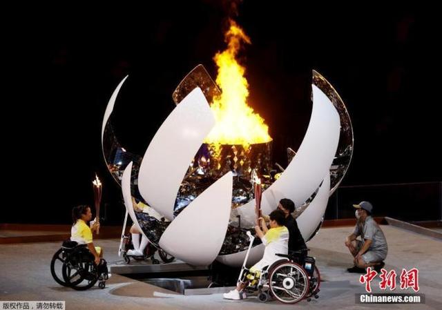 8月24日,日本東京,2020東京殘奧會(huì)開幕式在東京新國立競(jìng)技場(chǎng)舉行。圖為殘奧會(huì)火炬點(diǎn)火。