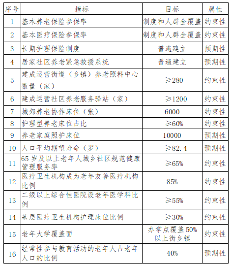 “十四五”期間老齡事業(yè)發(fā)展重點指標