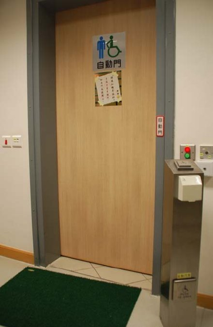 無(wú)障礙廁所的自動(dòng)門(mén),殘疾人可以用手和腳方便的開(kāi)、關(guān)門(mén)