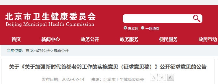關(guān)于《關(guān)于加強新時代首都老齡工作的實施意見(征求意見稿)》公開征求意見的公告