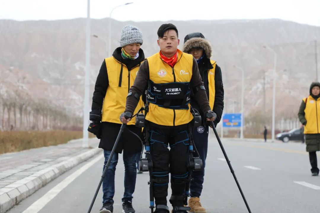 身著這款新一代大艾Ai外骨骼機(jī)器人的,是患有截癱的殘疾人優(yōu)秀代表邵海朋。2017年,邵海朋因高空墜落導(dǎo)致截癱,雙下肢失去行走功能,只能借助輪椅出行。面對(duì)不幸,邵海朋表現(xiàn)出堅(jiān)韌而積極樂觀的品格,一直堅(jiān)持使用大艾外骨骼機(jī)器人康復(fù)訓(xùn)練。2018年,邵海朋參加“科技助殘”穿越“一帶一路”機(jī)器人行走馬拉松公益挑戰(zhàn)賽,以9天、26小時(shí)的好成績(jī)穿戴外骨骼機(jī)器人走完全程馬拉松,打破了國外保持的15天走完機(jī)器人行走馬拉松的世界紀(jì)錄,借助科技的力量,實(shí)現(xiàn)自我超越,創(chuàng)造屬于中國人的奇跡與歷史!期間從新疆克州、西安、北京、南京跨越5000多公里,克服帕米爾高原嚴(yán)寒風(fēng)雪、長(zhǎng)時(shí)間行走身體不適等諸多困難,展現(xiàn)了中國殘障人士自強(qiáng)不息的奮斗精神。2019年,通過不斷的康復(fù)努力,邵海朋已經(jīng)能在拐杖輔助下重新行走。