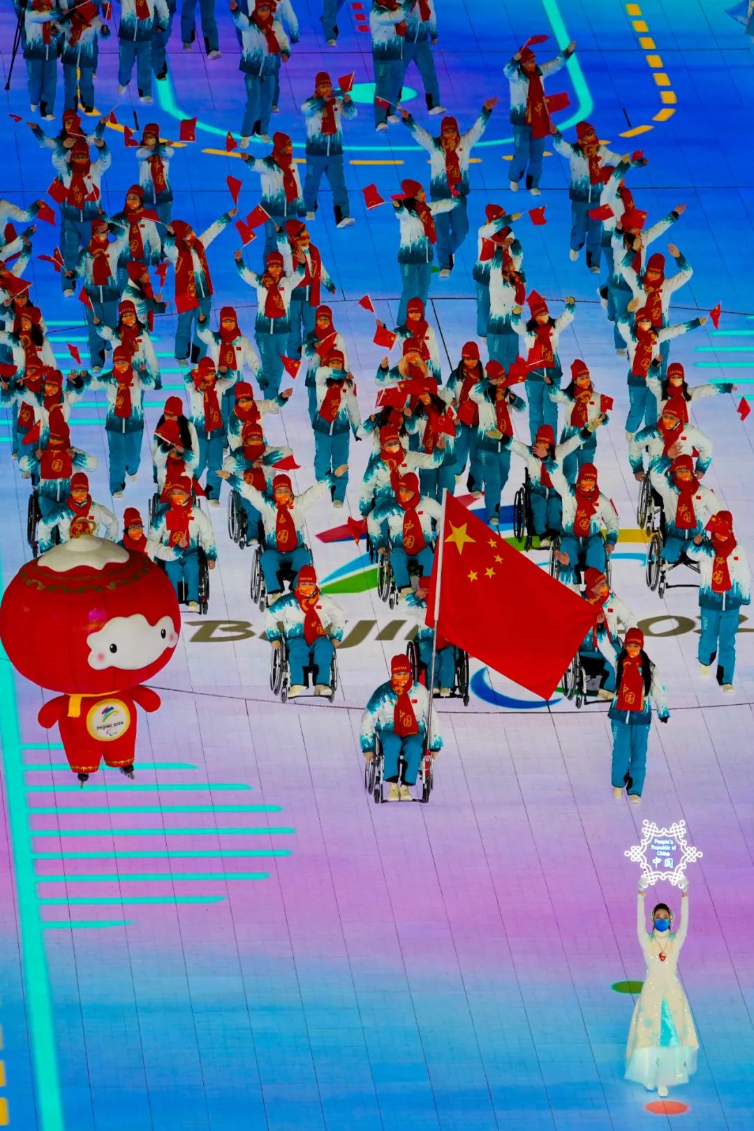 作為東道主,中國(guó)冬殘奧代表團(tuán)壓軸入場(chǎng)。這是中國(guó)第六次組團(tuán)參加冬殘奧會(huì),也是中國(guó)參加冬殘奧會(huì)以來,代表團(tuán)規(guī)模最大、運(yùn)動(dòng)員人數(shù)最多、參賽項(xiàng)目最全的一屆。參賽運(yùn)動(dòng)員中有85名為首次參加冬殘奧會(huì),占比88.5%。運(yùn)動(dòng)員平均年齡25歲,年齡最大的為45歲的高山滑雪運(yùn)動(dòng)員張海原,年齡最小的為17歲的單板滑雪運(yùn)動(dòng)員耿焱紅。