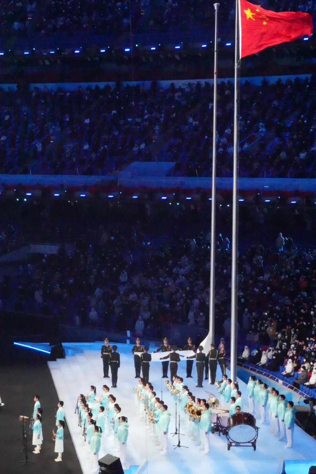 鳥巢出現(xiàn)巨幅五星紅旗,再次響起《歌唱祖國(guó)》。