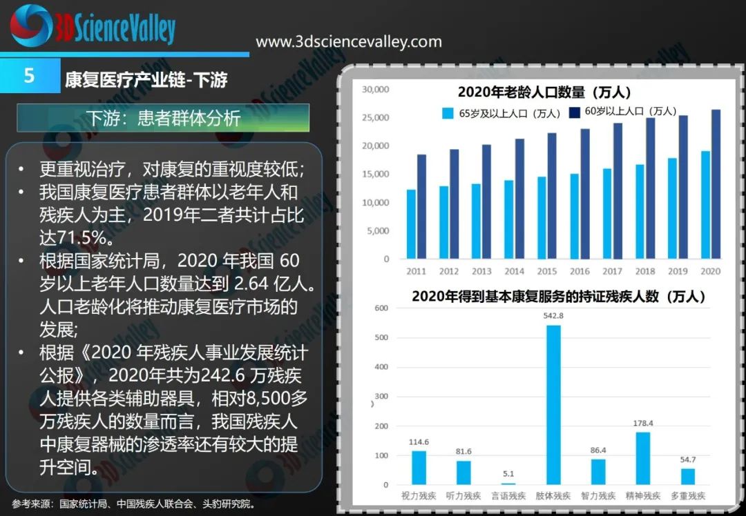 基于我國龐大的殘疾人與老年人群體,我國康復輔助器具市場具有需求人數(shù)多、市場潛力大的特點。近年來,3D打印、仿生、人工智能、虛擬現(xiàn)實等新興技術,正在加速融入康復輔具領域,為康復輔助器具的創(chuàng)新與發(fā)展提供了新動力。