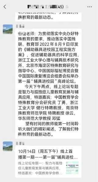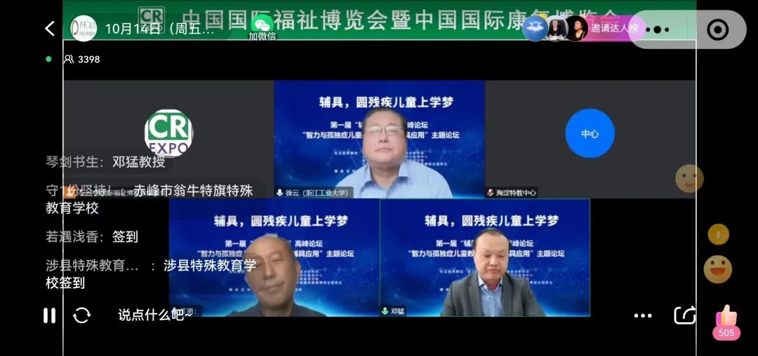 由浙江工業(yè)大學(xué)心理與輔具技術(shù)研究所、南京特殊教育師范學(xué)院特殊教育學(xué)院、北京市海淀區(qū)特殊教育研究與指導(dǎo)中心、中國(guó)國(guó)際福祉博覽會(huì)暨中國(guó)國(guó)際康復(fù)博覽會(huì)組委會(huì)聯(lián)合主辦的第一屆“輔具進(jìn)校園”高峰論壇于2022年10月14日和21日成功線上舉辦,共吸引全國(guó)5萬(wàn)余名普特教育工作者參加。