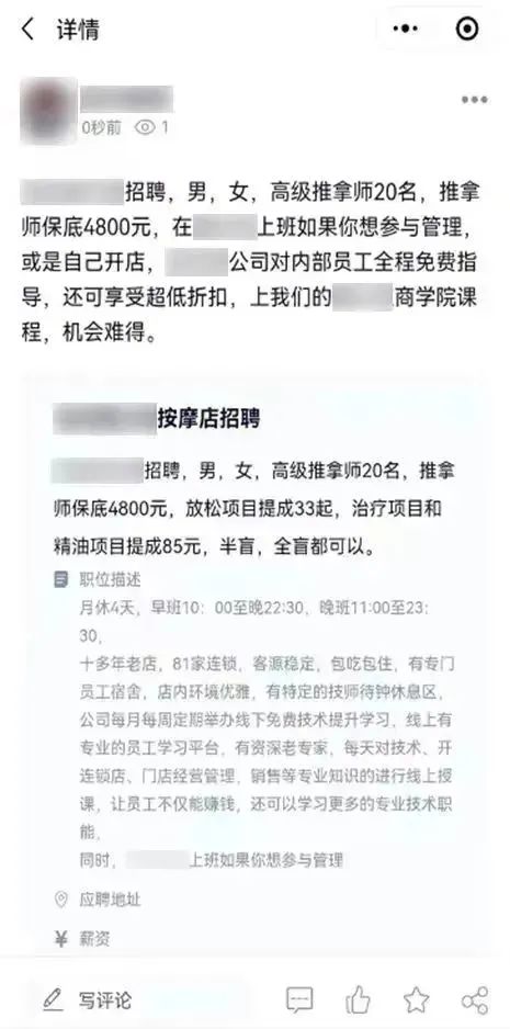 在啟明圈小程序上,大量面向視障群體的工作崗位實(shí)現(xiàn)了精準(zhǔn)對(duì)接——眾多盲人按摩店店主在這里發(fā)送招聘信息,而視障用戶則在這里通過(guò)無(wú)障礙優(yōu)化技術(shù)閱讀各類招聘信息并找到合適的工作機(jī)會(huì)。