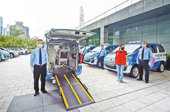 除了地鐵方面的交通設(shè)施,深圳目前也投放了60臺(tái)無障礙出租車,無障礙出租車擁有上下車輔助電動(dòng)踏板、輪椅固定裝置等無障礙附屬設(shè)施。有需求的人士可提前12小時(shí)進(jìn)行用車預(yù)約。
