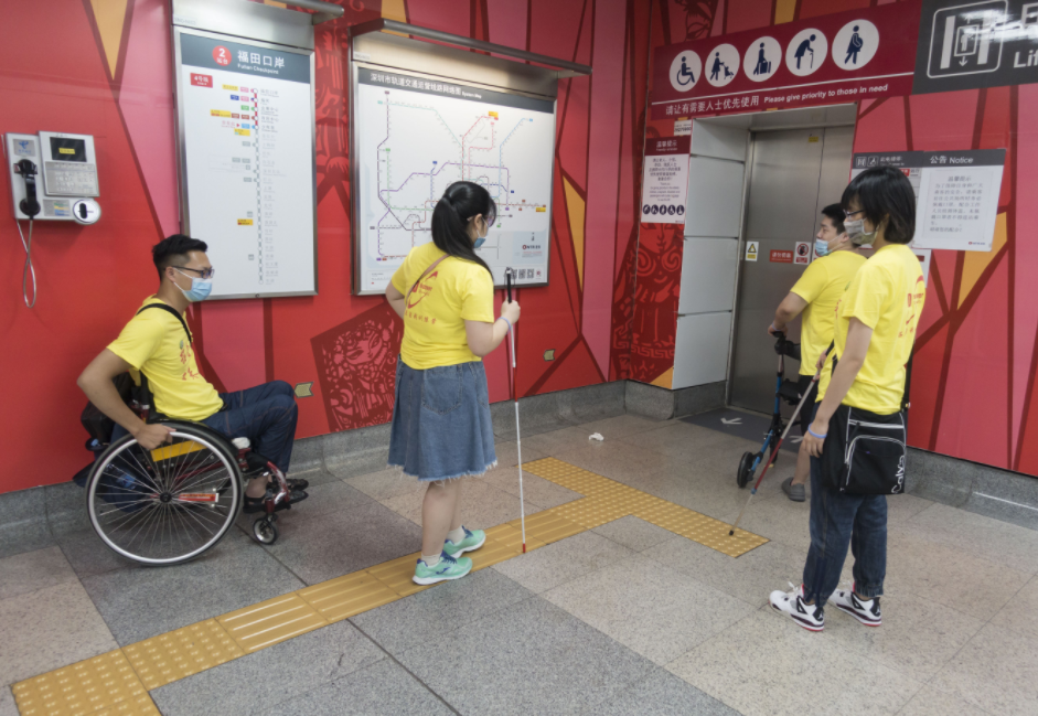 現(xiàn)如今在深圳,走進(jìn)任何一個(gè)地鐵站,映入眼簾的都是色澤鮮艷的黃色盲道,同時(shí)幾乎每個(gè)站點(diǎn)都設(shè)有無障礙電梯(垂直電梯),無障礙電梯出入口前設(shè)有無障礙通道供行動(dòng)不便或持大件行李、推嬰兒車等乘客方便地進(jìn)出。
