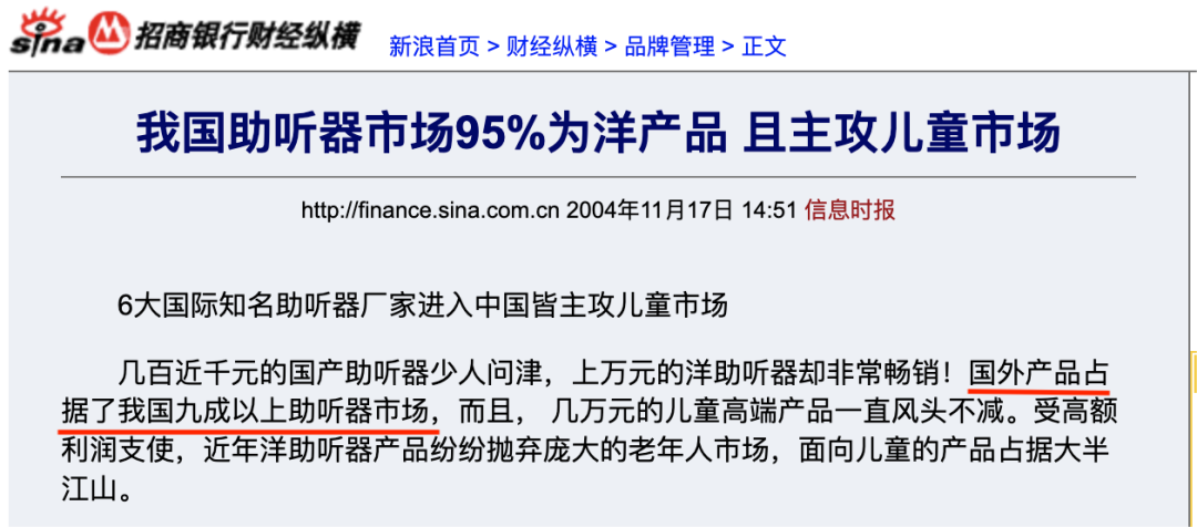 歐洲證券行業(yè)專業(yè)分析機(jī)構(gòu)卡內(nèi)基證券所分析,2004年中國僅有1000多家助聽器驗配店和服務(wù)機(jī)構(gòu),市場上的優(yōu)質(zhì)助聽器僅為20萬臺,且9成以上為國外產(chǎn)品。