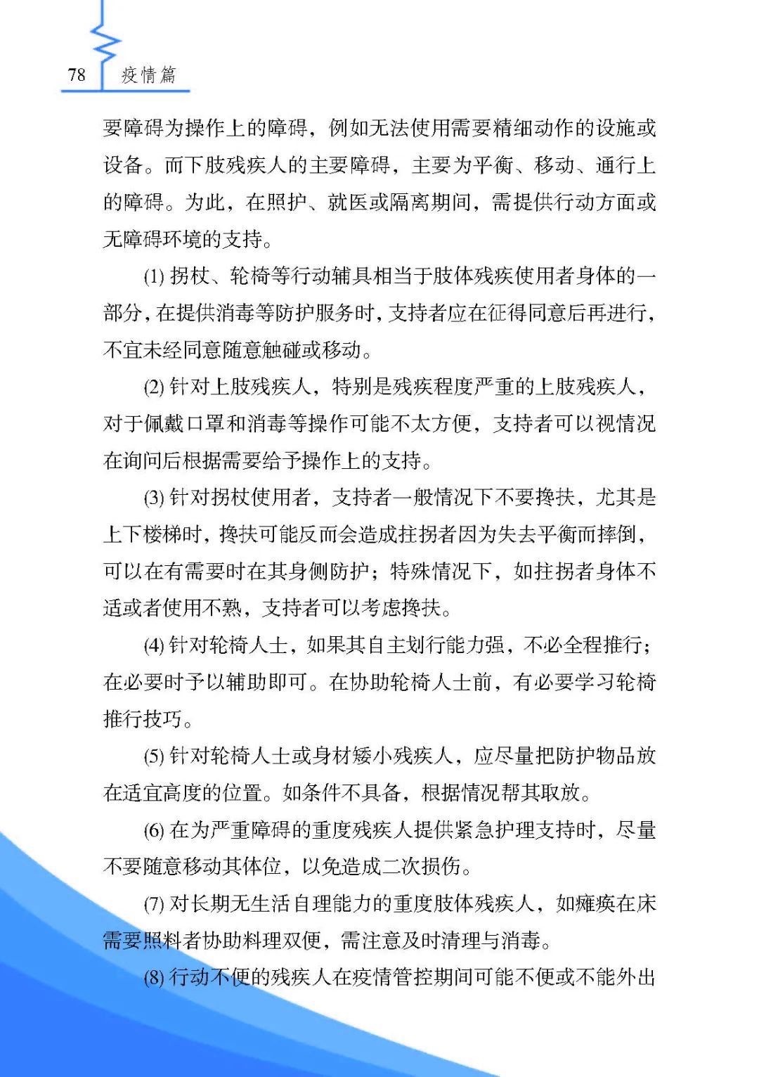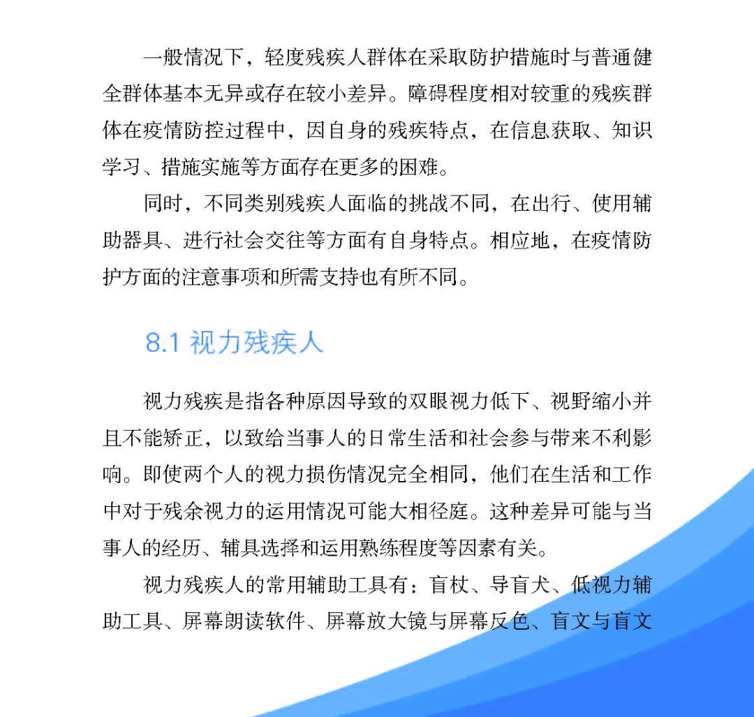 疫情給殘疾人帶來了身心健康、照護、經濟等多方面的挑戰(zhàn),日常生活中,殘疾人應如何做好防護呢?為做好殘疾人群體疫情防控工作,幫助殘疾人朋友科學防疫,當好自己健康的第一責任人,中國殘疾人聯(lián)合會組織編寫了《殘疾人安全防護實用手冊·疫情篇》。