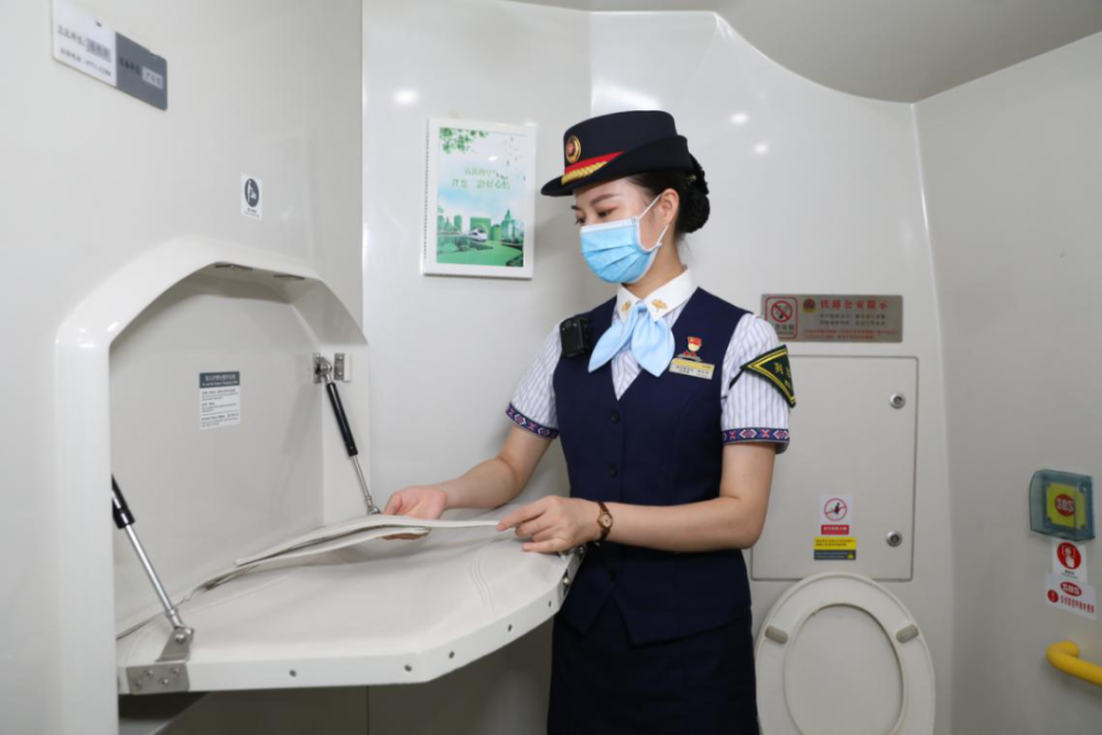 高鐵列車上設(shè)有無障礙衛(wèi)生間。配備安全扶手、SOS報(bào)警器等無障礙設(shè)施和母嬰護(hù)理臺(tái),為重點(diǎn)旅客提供旅途便利。