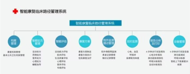 智能康復(fù)路徑管理系統(tǒng)主要面向心肺康復(fù)信息管理。心肺康復(fù)管理系統(tǒng)是一個(gè)專業(yè)的數(shù)字系統(tǒng),可以掌握患者的整個(gè)康復(fù)數(shù)據(jù)??祻?fù)管理系統(tǒng)與康復(fù)設(shè)備相結(jié)合,可以實(shí)現(xiàn)康復(fù)數(shù)據(jù)的電子化和康復(fù)過程的標(biāo)準(zhǔn)化。同時(shí),系統(tǒng)可以智能分析數(shù)據(jù)并生成報(bào)告。醫(yī)生根據(jù)報(bào)告為患者制定個(gè)性化的治療方案,促進(jìn)患者康復(fù),實(shí)現(xiàn)精準(zhǔn)醫(yī)療。