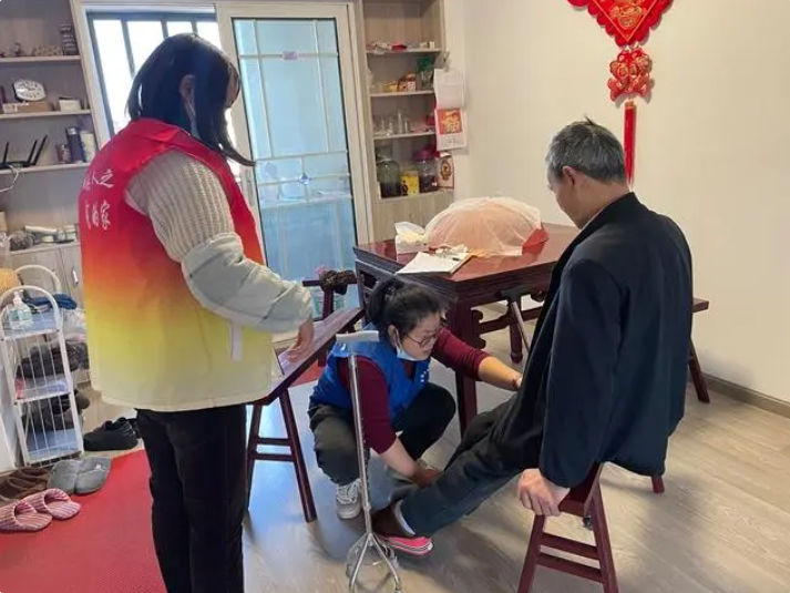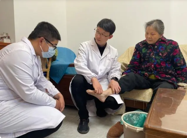 經(jīng)康復(fù)師檢查后發(fā)現(xiàn),她的小腿處有水腫現(xiàn)象,便開(kāi)始為她進(jìn)行按摩等一系列居家康復(fù)鍛煉,同時(shí)叮囑她多坐少臥,嘗試借助拐杖走動(dòng),促進(jìn)腿部血液循環(huán)。