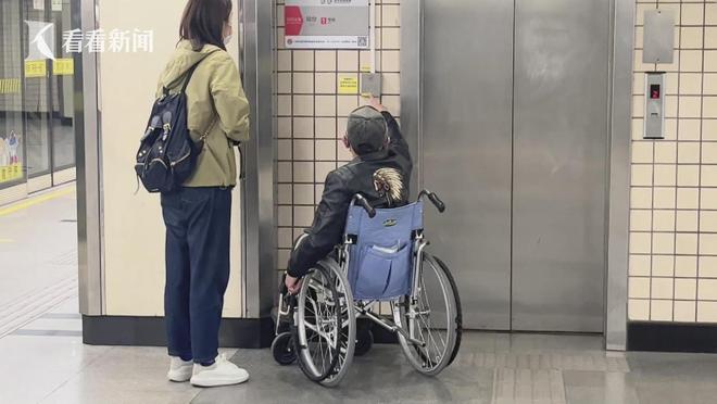 在上海軌交1號線漢中路站,記者陪同輪椅出行的張老先生前去換乘13號線,可站臺旁的無障礙電梯,大門緊閉。記者找來了工作人員,對方介紹,這部電梯上去后,直接就出了站,因此平時為了防止誤出站及逃票等情況,電梯是關(guān)閉狀態(tài),如果像老張這樣確有使用需求的,呼叫工作人員后,他們會前來手動打開。