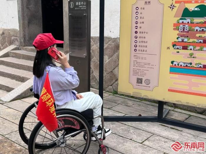 體驗(yàn)者撥打游客中心無(wú)障礙服務(wù)電話 東南網(wǎng)記者 原芷晴 攝
