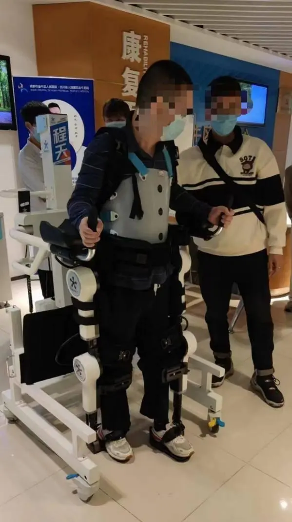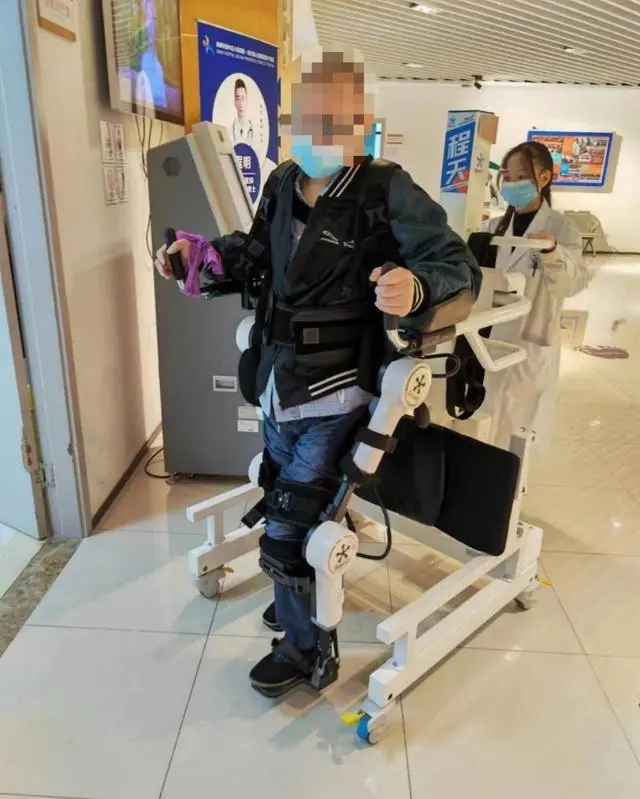 ??????? 就在小康入院半個月后,因為醫(yī)院引進的外骨骼機器人,康復(fù)信心逐漸恢復(fù)。作為首批使用機器人的康復(fù)患者,小康每天會在它的協(xié)助下完成量身定制的步態(tài)行走訓(xùn)練,經(jīng)過一個多月的堅持,小康實現(xiàn)了拿著助行架獨立行走。