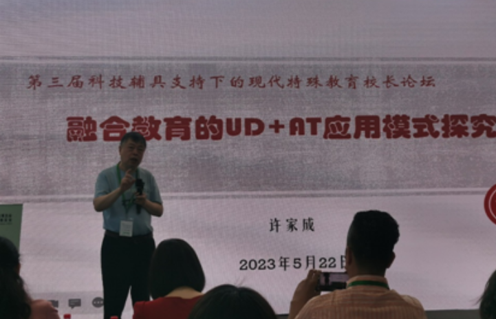 融合教育作為一種新的教育模式,正在逐漸成為特殊教育發(fā)展的趨勢,通過跨學科融合、技術融合、文化融合和實踐融合等方式,更好地滿足學生多元化的教育需求,本屆論壇聚焦“融合教育背景下的UDL+AT的應用”,邀請國內(nèi)該領域開展研究與探索的校長們分享融合教育成果與經(jīng)驗,共同探討更加美好的發(fā)展前景。許家成教授首先進行了“通用設計學習與科技輔具在融合教育中的應用”的主旨報告,他指出,在實際教學中,通用學習設計能夠充分體現(xiàn)關注個體、惠及全體學生的教育理念,輔助技術則讓特殊兒童教育成為可能,使教學更為有效。為此,需要推進IESP引領下的UD&AT支持模式的實際運用,并提出科技輔具支持下的現(xiàn)代特殊教育是教育質(zhì)量提升的有效途徑之一。